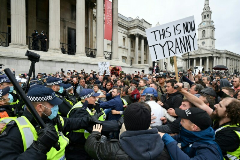 Europa Confrontos entre manifestantes contra o confinamento e polícia em Londres 27 de Setembro, 2020