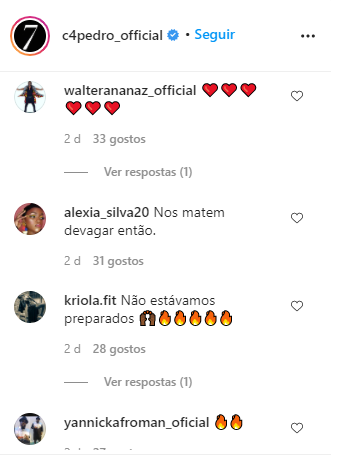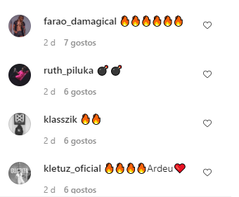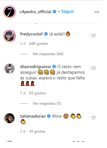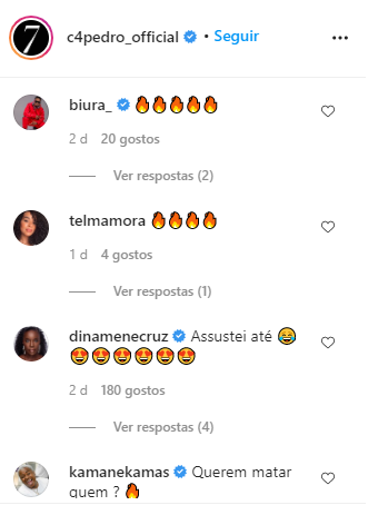 Fredy Costa comentou “Já Está!!!”. Biura e Telma Lee meteram emojis de fogo e Dinamena Cruz disse “Assustei até”.
