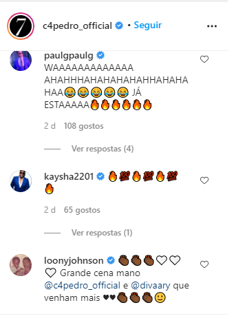 videoclip surpresa de C4 Pedro com Ary, que já tiveram uma relação amorosa no passado, movimentou as redes sociais, especial no Instagram, onde várias celebridades nacionais e internacionais deixaram o seu love.